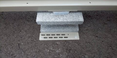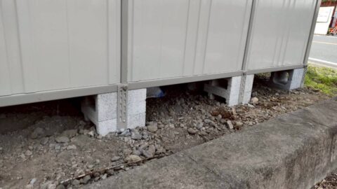 設置場所の下地が、コンクリートやアスファルトの場合は、どうしても土台ブロックが動いてしまうことがあります。入り口側のブロックは、出し入れの際に無意識に蹴っ飛ばしてしまうことが多いようです。お客様にはその点気を付けてくださいと説明して納めてくるのですが、それでも動いてしまうことがあるようなので、いろいろ工夫して施工するようにしています。